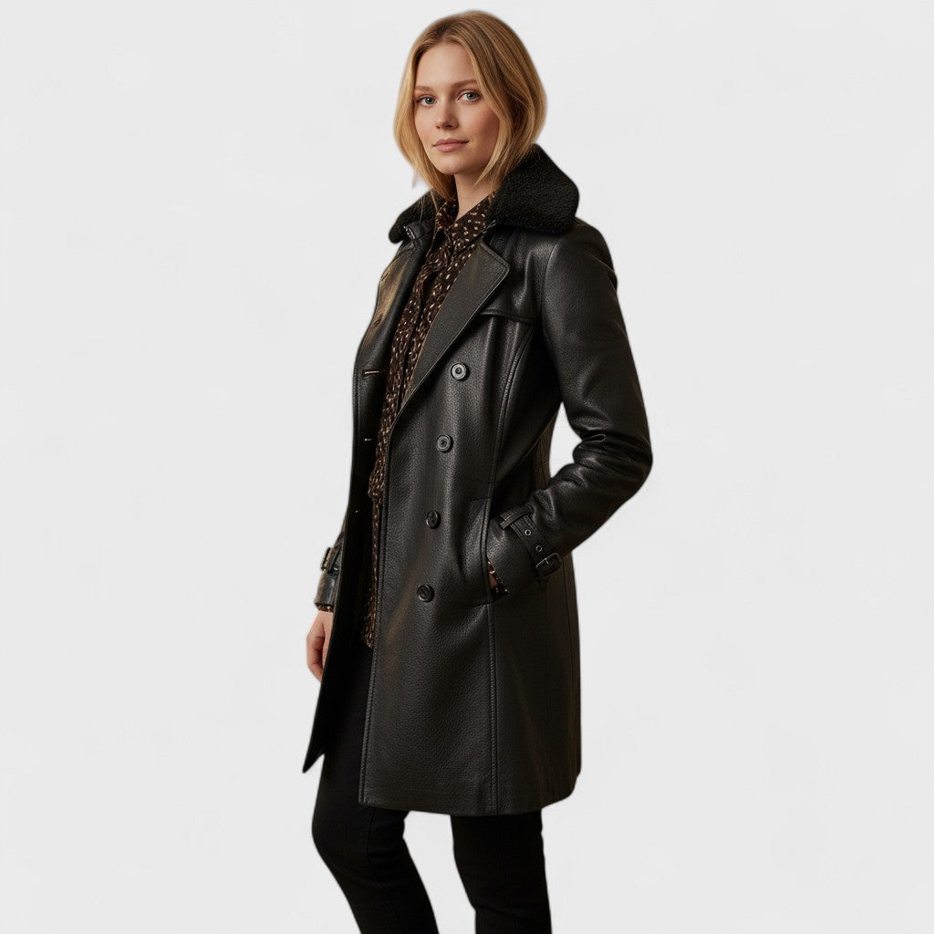 Καρολίνα - Κομψό δερμάτινο παλτό
