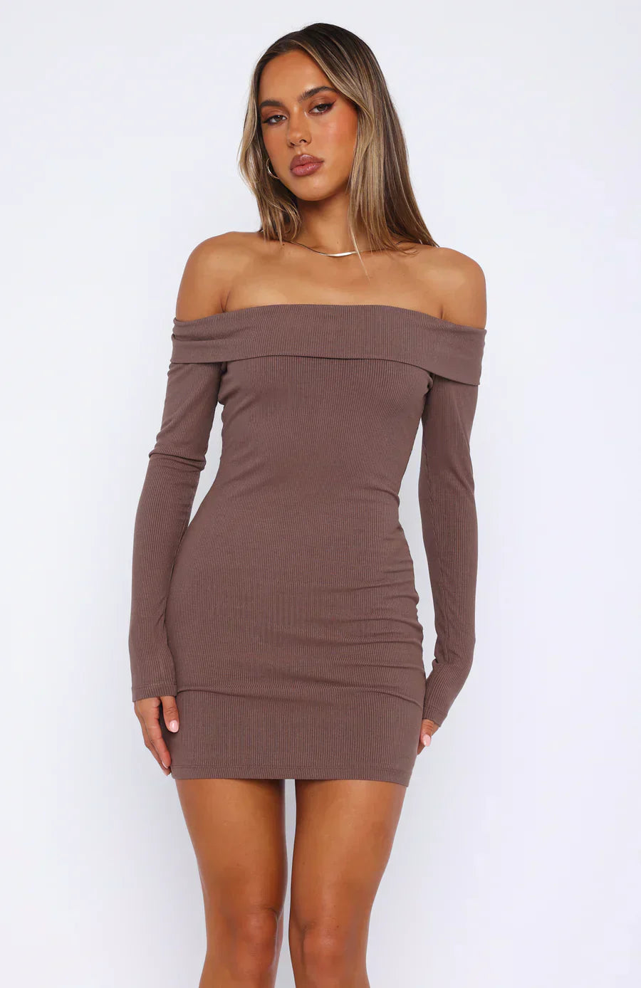 Το τέλειο φόρεμα δεν χρειάζεται στολίδια — μόνο στάση. Αυτό το μαύρο, εφαρμοστό φόρεμα με μακριά μανίκια και ανοιχτό λαιμό ώμου σε ώμο είναι ο ορισμός της εξαιρετικής κομψότητας. Ιδανικό για ειδικές βραδιές ή όταν θέλεις να κυριαρχήσεις σε οποιοδήποτε περιβάλλον με στυλ και αυτοπεποίθηση. Η εφαρμοστή γραμμή αναδεικνύει τις καμπύλες, ενώ ο μινιμαλιστικός σχεδιασμός αφήνει χώρο για εντυπωσιακά αξεσουάρ.