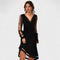 Εντυπωσιάστε σε κάθε περίσταση με αυτό το κομψό μαύρο φόρεμα, που συνδυάζει τέλεια την κομψότητα με μια δόση τολμηρότητας. Με V ντεκολτέ και μακριά διαφανή μανίκια με λαμπερές λεπτομέρειες, αυτό το ρούχο μεταφέρει γοητεία και θηλυκότητα με λεπτό και εκλεπτυσμένο τρόπο.